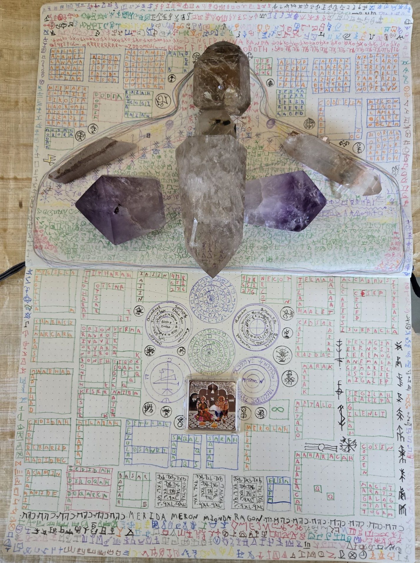 Granite Pulse Light, Silver Lunar Flame, Amber Grid Rings, and Violet Flame.